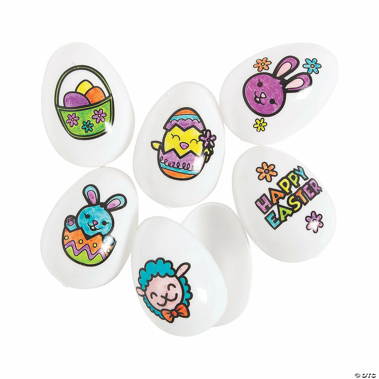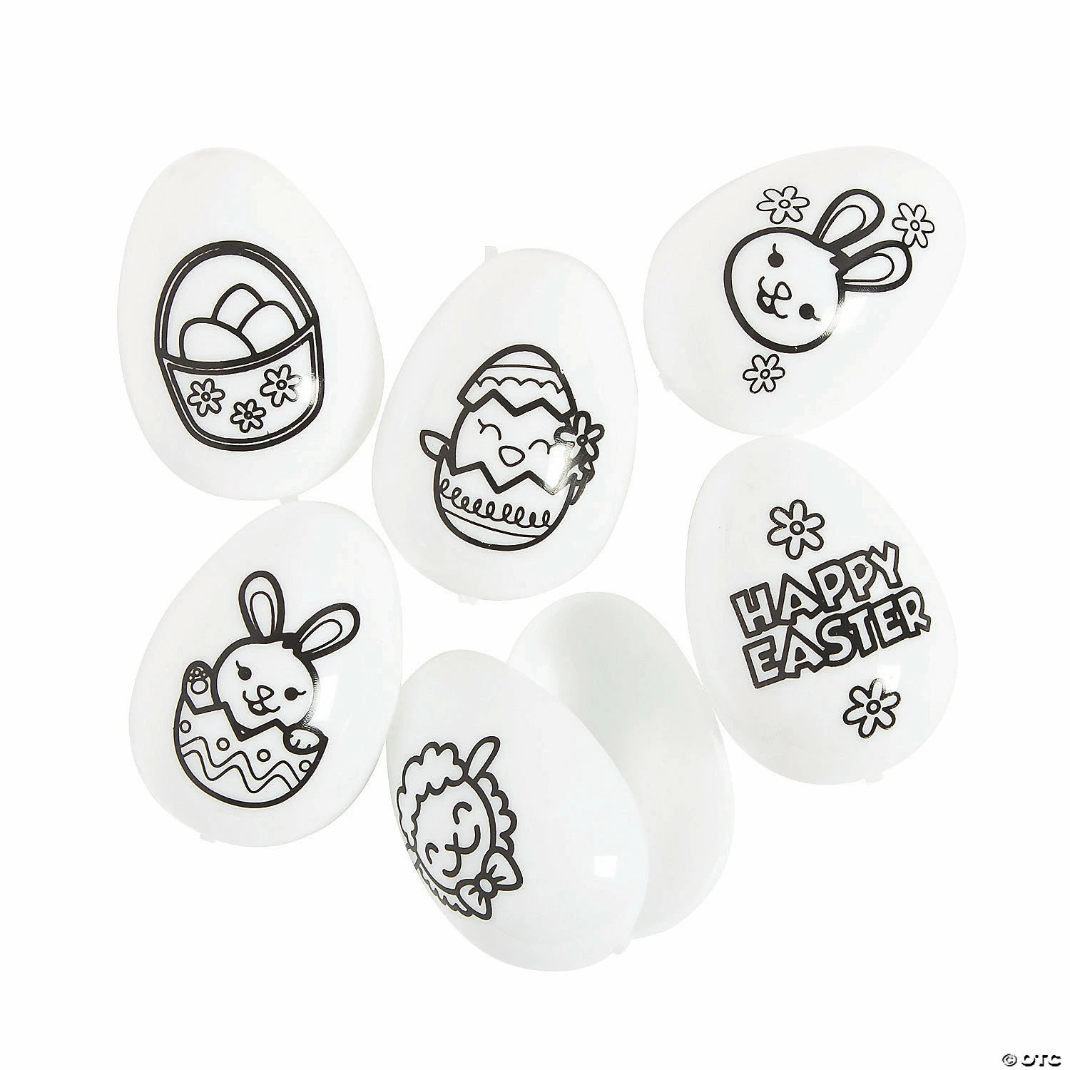 Looking for an easy way to color Easter eggs? Then these Color Your Own plastic eggs are an egg-celent solution! Perfect for a classroom coloring project or at-home Easter craft, the plastic eggs feature black and white designs that kids can decorate. You can also fill the eggs and use them as Easter egg hunt supplies! Kiddos can color the eggs after the hunt! Plastic. (6 dozen per unit) 2 1/4″ Permanent markers recommended. © OTC