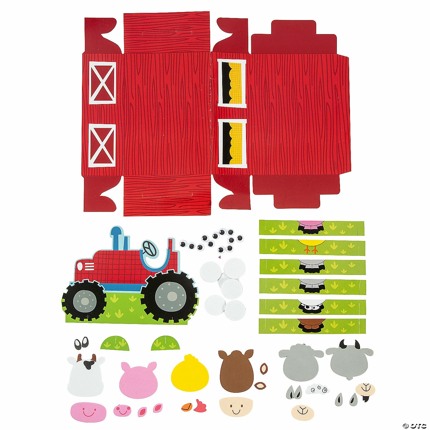 All the farm animals are up early today, ready for a day full of Easter fun and play! Kids will have a blast turning ordinary Easter eggs into cute and friendly little farm animals. This decorating kit is a great Easter activity for kids to do at home where they can use imaginative play and create new farm scenes. Includes self-adhesive foam pieces, plastic googly eyes and cardstock. Eggs sold separately. Animals, 1 3/4″ x 2 3/4″, tractor, 6 1/2″ x 4 1/2″, barn, 6″ x 2″. Makes 1. All craft kits are pre-packaged for individual use. Kits include instructions. ยฉ OTCFarm Egg Decorating Instructions