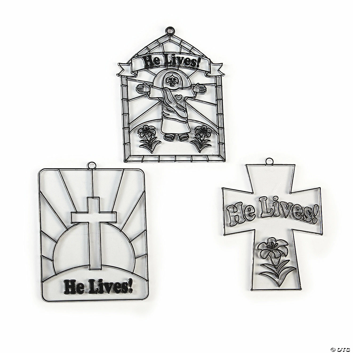 βHe Livesβ Suncatchers. Let the sun grace your house with brilliant colors and rejoice that “He Lives!” Our “He Lives” Suncatchers make painting easy and fun. With 2 dozen sun catchers in each unit and three different styles to paint, these plastic suncatchers are perfect fun for Sunday School, VBS or an Easter church group activity. 3 1/4β x 4 1/4β Suncatcher paint sold separately online. Β© OTC